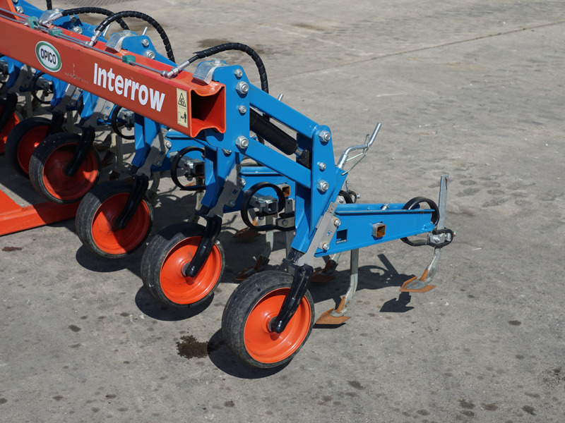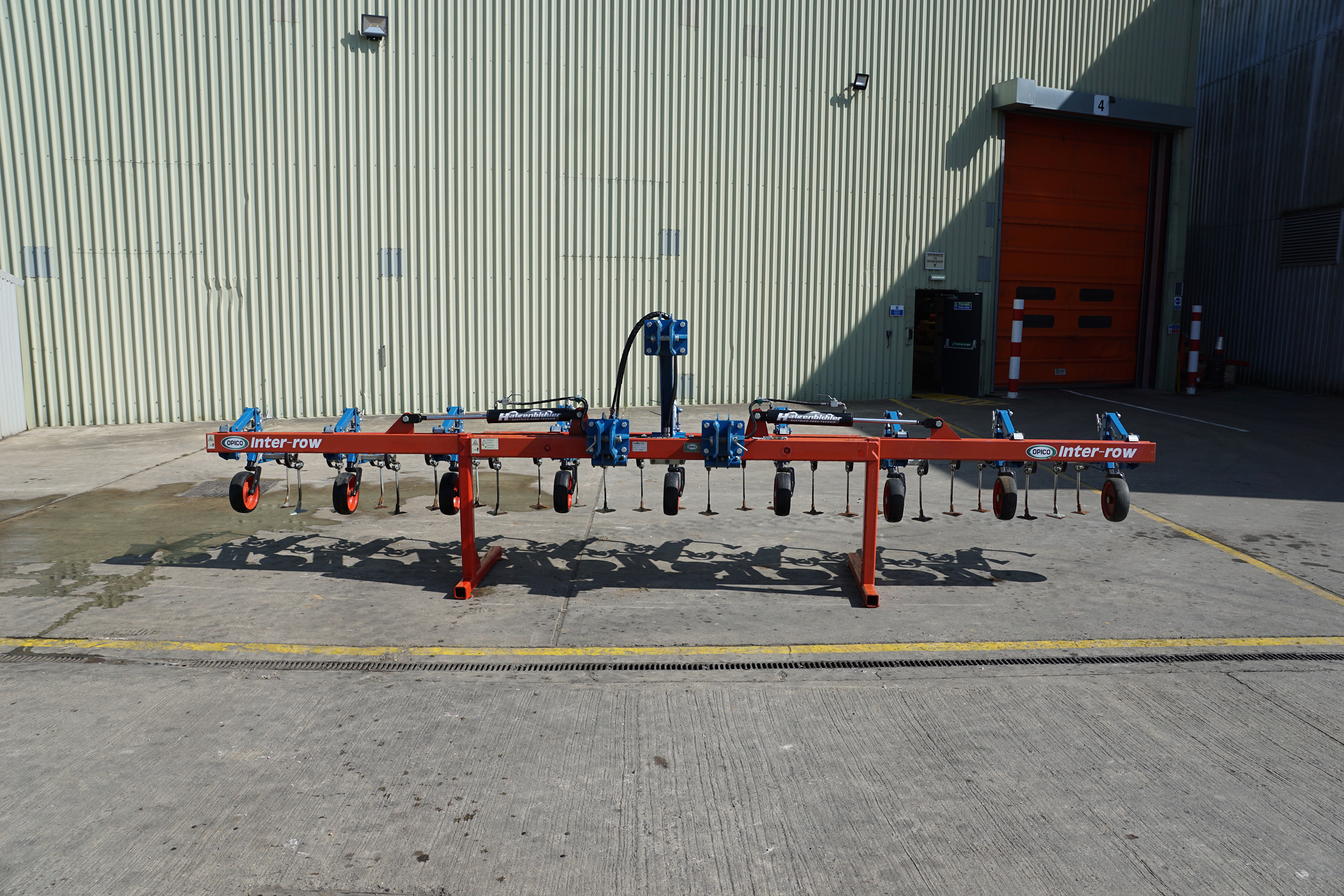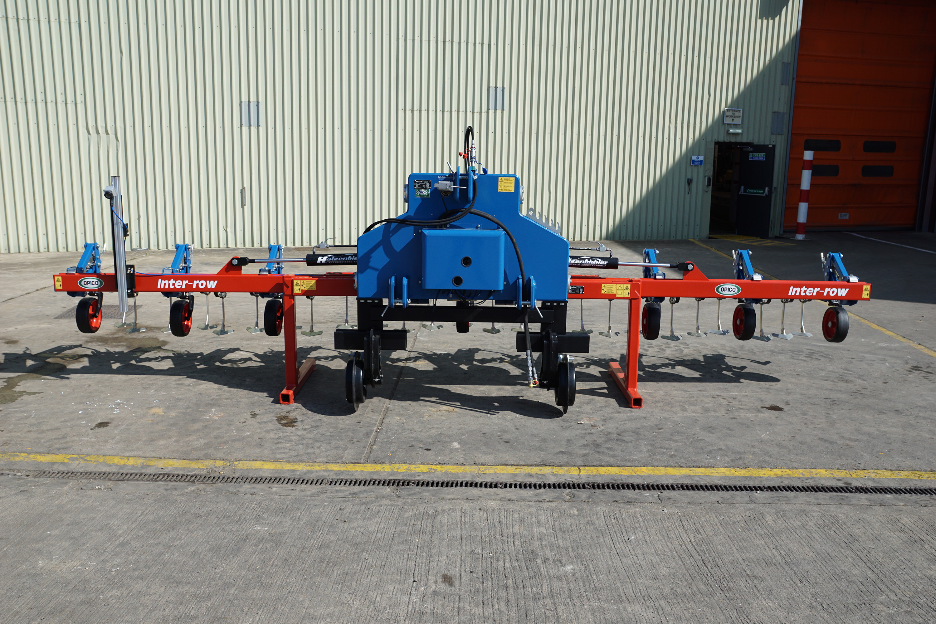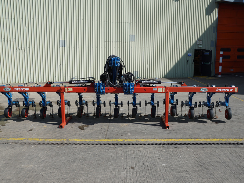 Ex-Demo 6m 8 row Interrow cultivator for 75cm spacing, 8 pairs of plant protection discs, 8 outlet electric seeder, guidance headstock with 2 cameras, platform and step